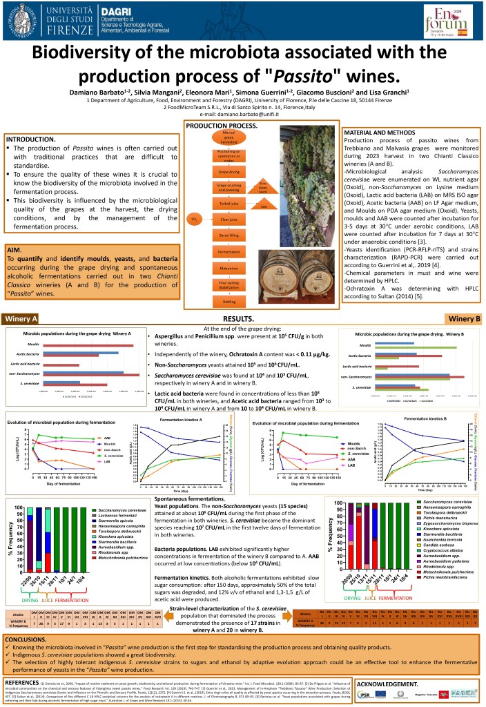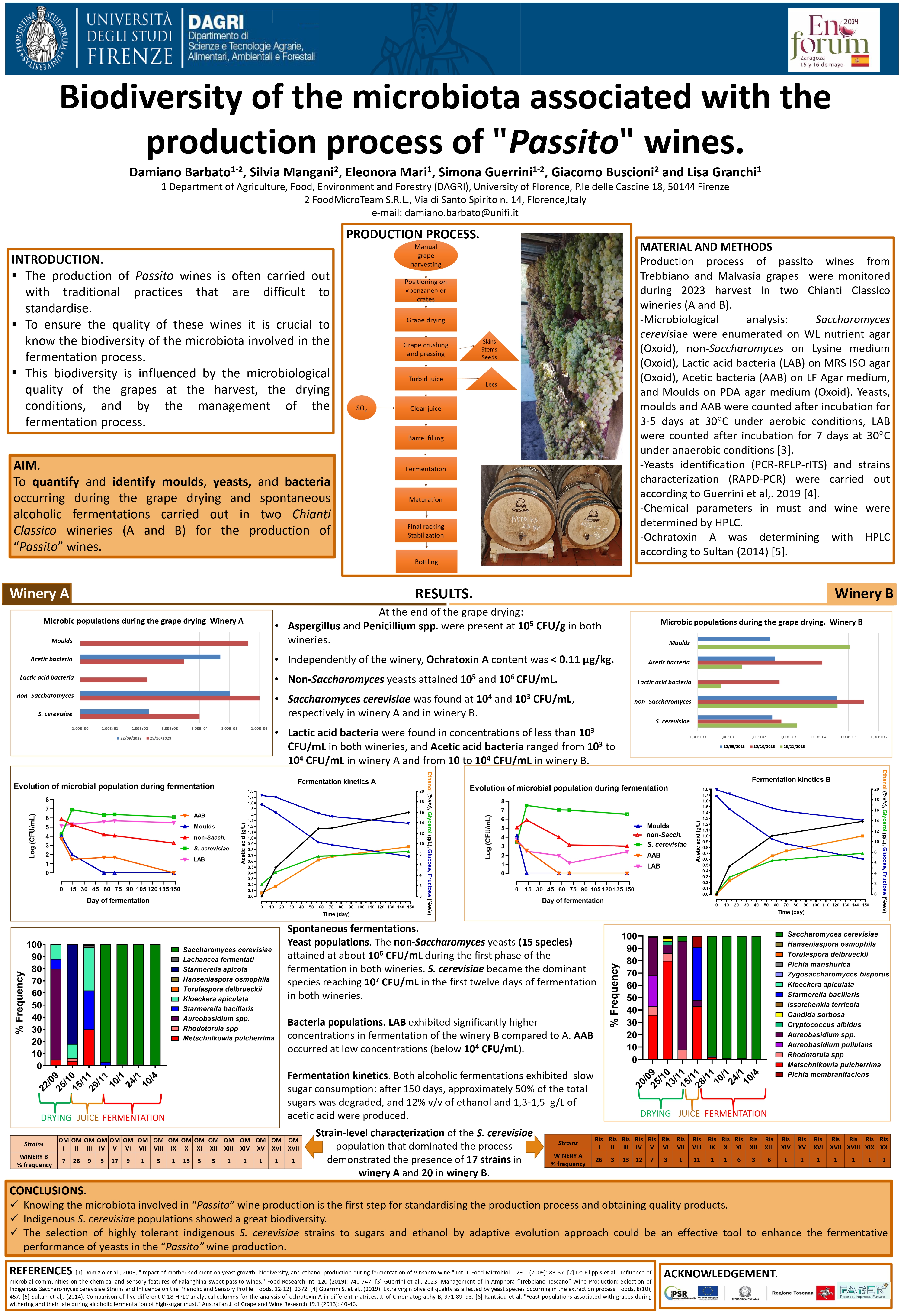 Di seguito il poster presentato dal Dott. Barbato durante il Congresso Enoforum dal titolo “Biodiversity of the microbiota associated with the